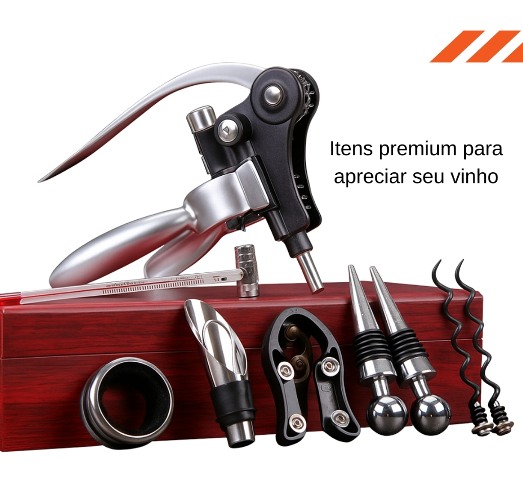 O Kit Sommelier 9 Peças foi criado para quem aprecia vinho e valoriza o ritual de servir com sofisticação, praticidade e estilo.