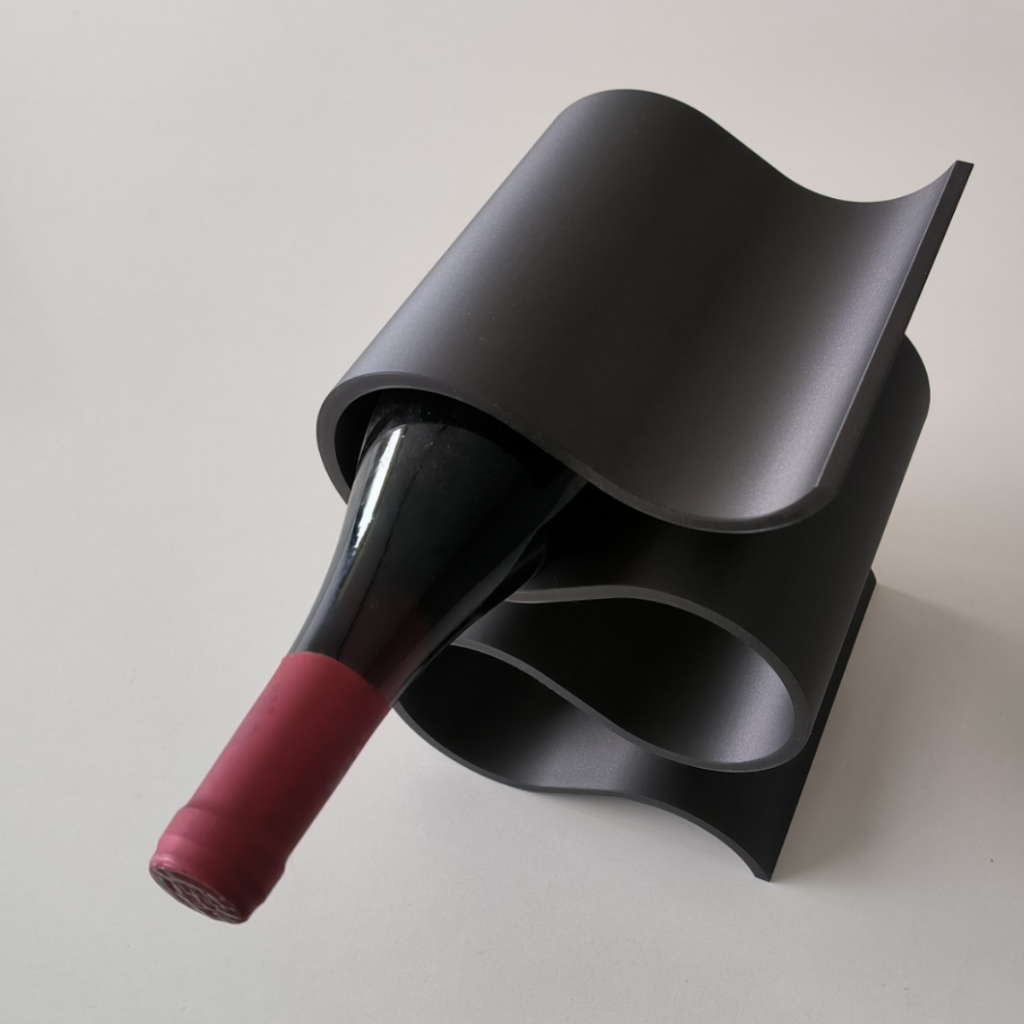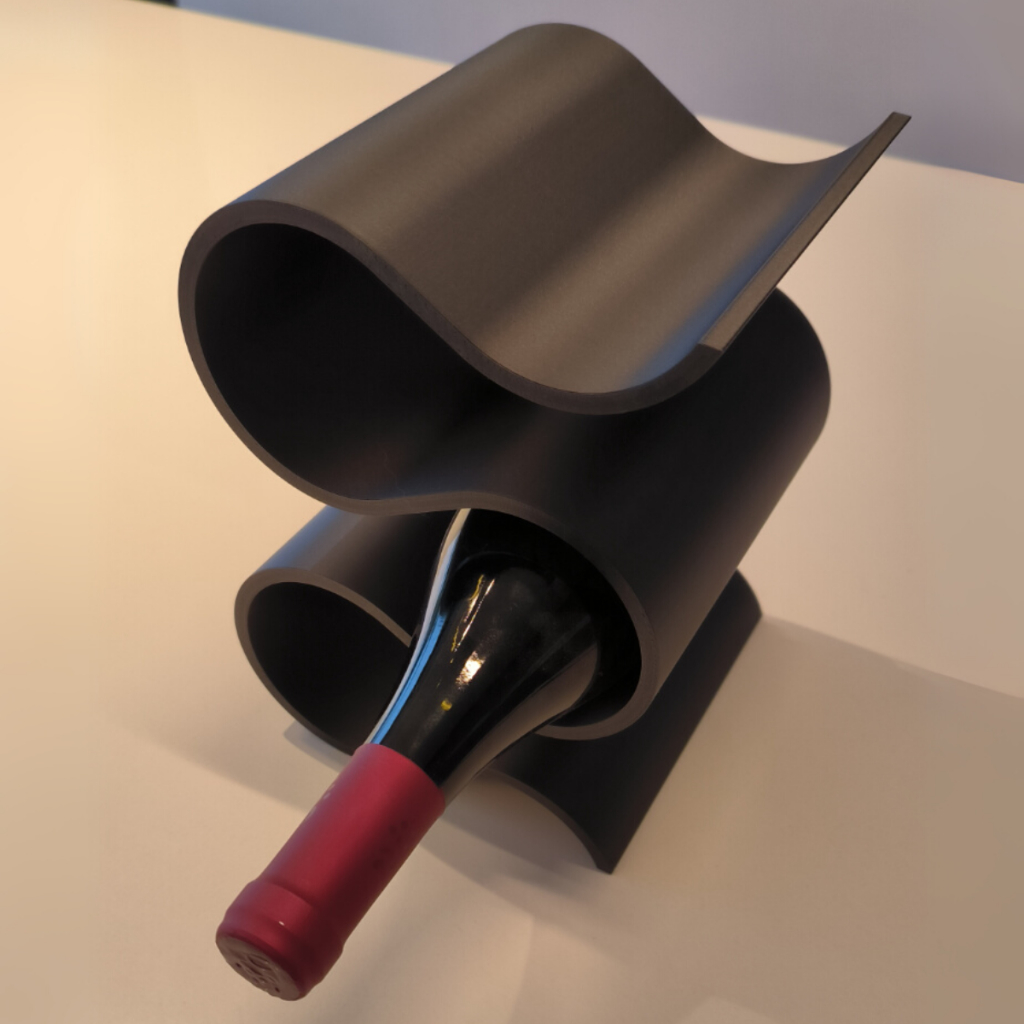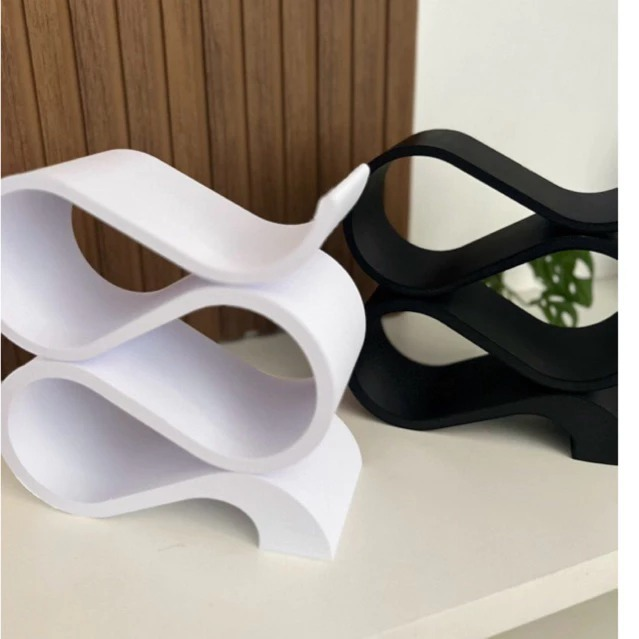 O formato fluido em curvas estilo “S” cria um visual contemporâneo e artístico, perfeito para salas, cozinhas, bancadas gourmet, bares ou adegas pessoais.