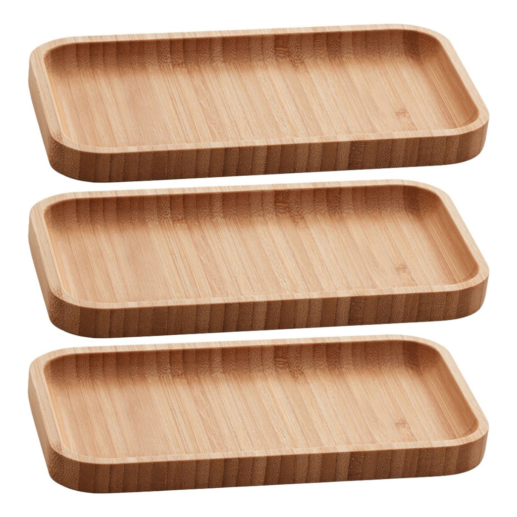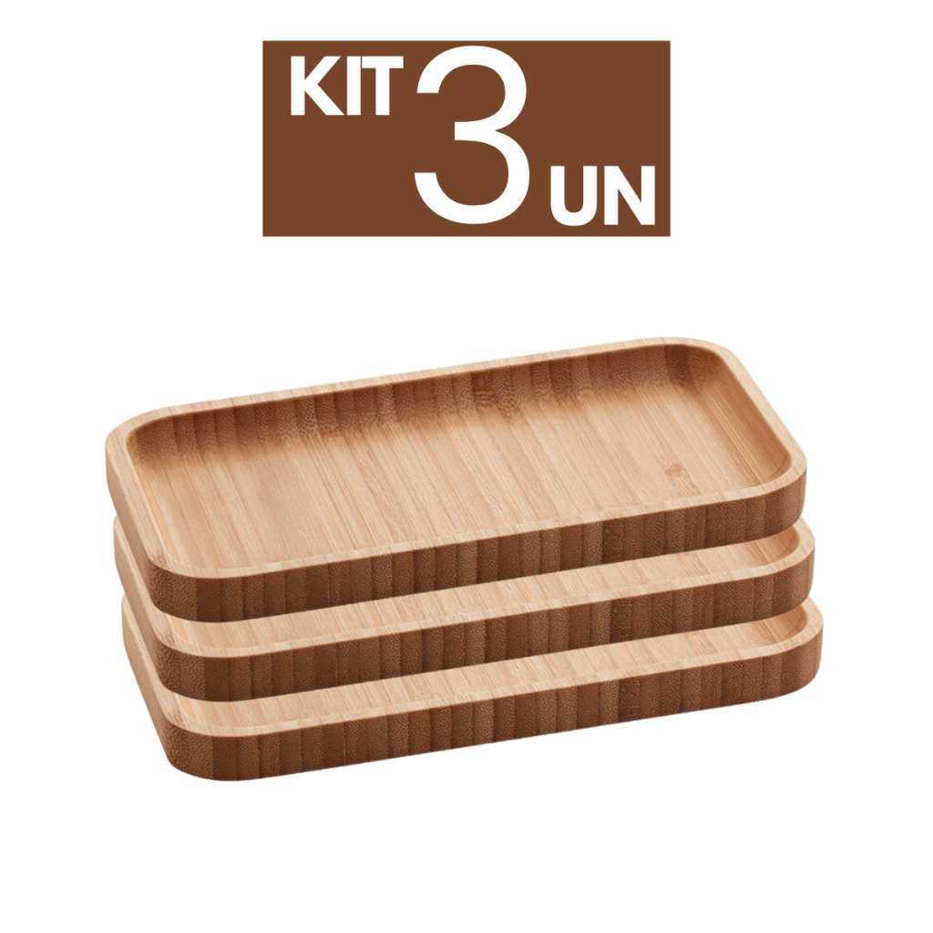 ✔ Kit inclui: 3 Bandejas de Bambu