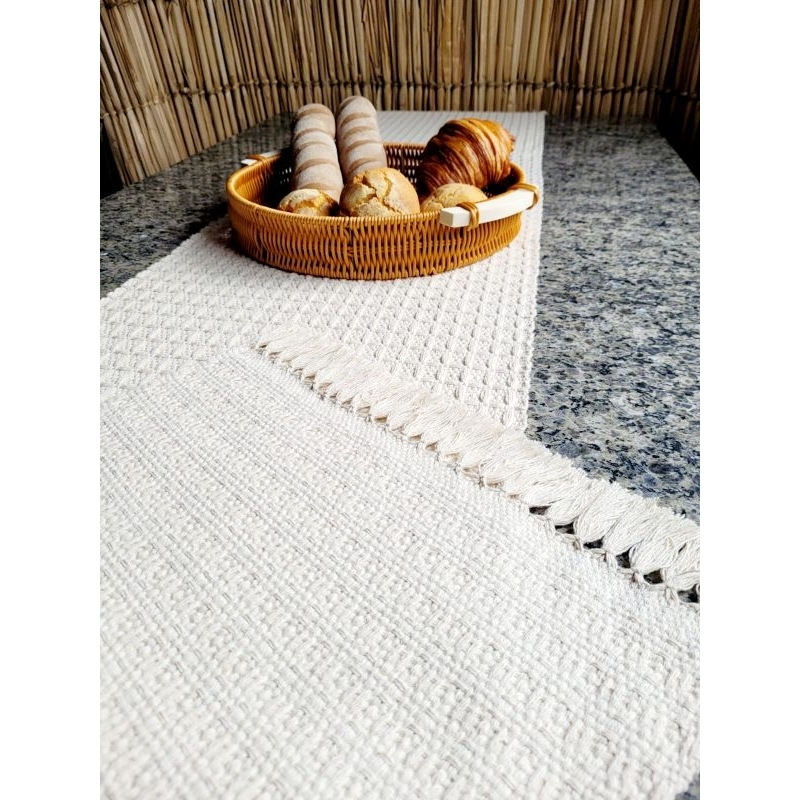 Os relevos em alto relevo e as franjas feitas totalmente à mão elevam o nível da decoração, deixando sua mesa pronta para receber quem você ama com charme e bom gosto.