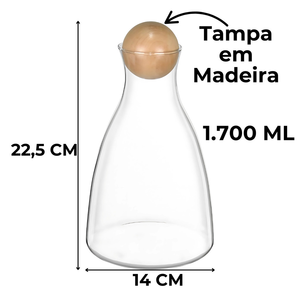• 1 Jarra de vidro com tampa de bambu – 1.700 ml