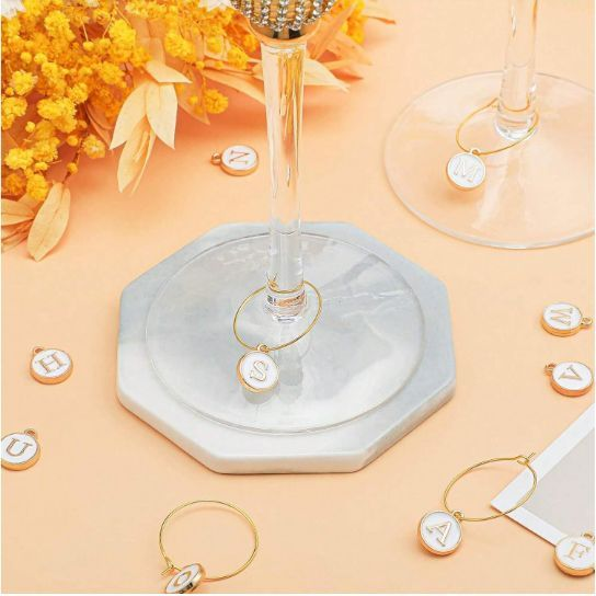Produzidos com material durável e acabamento dourado gold, os marcadores trazem brilho, requinte e personalidade para suas taças de vinho, champanhe ou drinks.